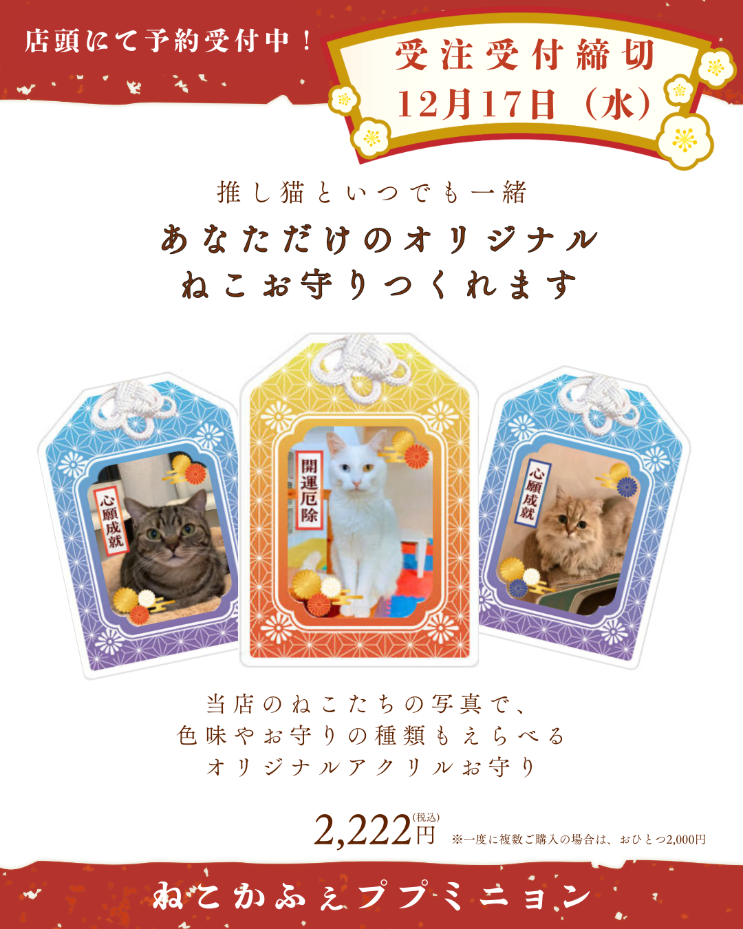 推し猫といつでも一緒! あなただけのオリジナルねこお守り、店頭にて受注好評受付中!